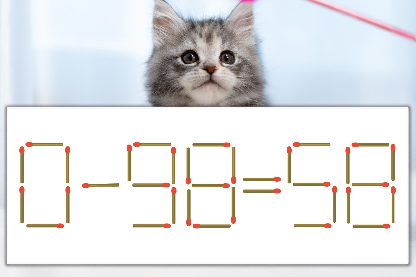 「9」を別の数字に変化させると答えが導き出せます。「9」のマッチ棒を1本移動して、「-」を「+」にしてみましょう。すると、「0+58=58」が成立します。