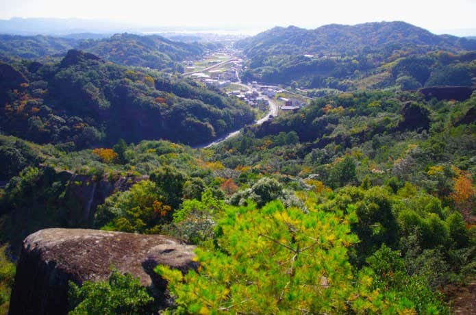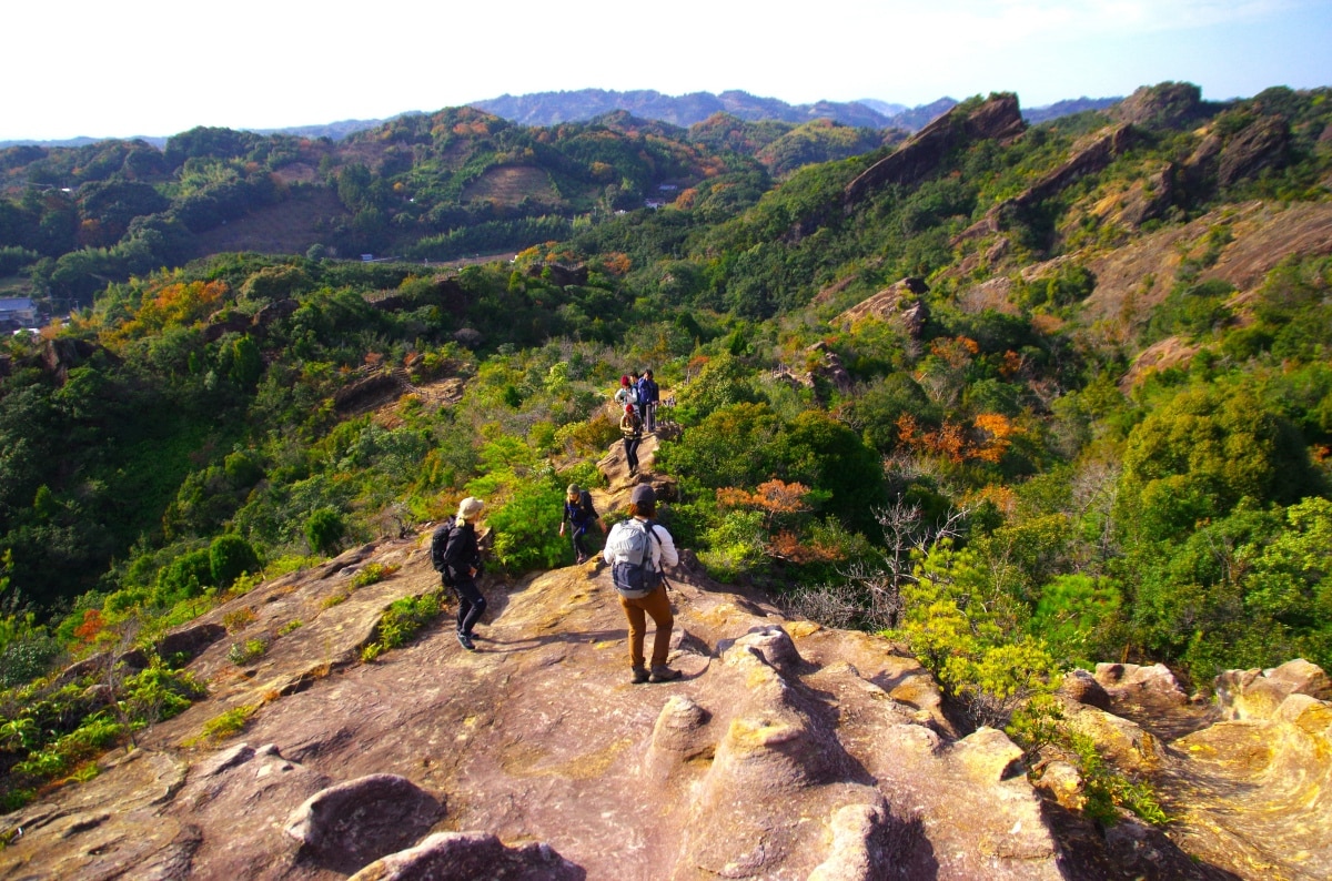 コースはいくつもあり、山中には岩屋があったり、滝があったり、巨岩に登ったりと、見どころ満載。しかも山頂からの大展望は一見する価値ありです。とくに冬はすっきりした大展望が期待できるとともに、九州の低山らしく早春の空気を先取りして味わえるのも嬉しいポイント。