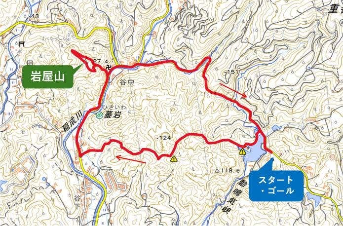 ふるさと自然公園センター(25分)→ひき岩群第一展望地(20分)→ひき岩群第二展望地(25分)→岩屋観音(20分)→岩屋山(15分)→岩屋観音(35分)→ふるさと自然公園センター