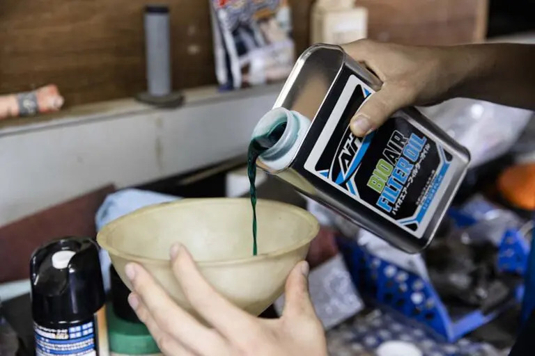 エアフィルターが乾いたらオイルを付けていきます。オイルによってフィルターに粘着力が出て、汚れを吸着。マシン内に砂ぼこり等の進入を防ぎます。