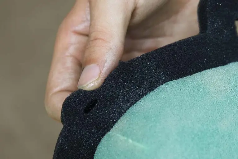 マシンの特性にもよりますが、エアフィルターは数回走ると写真のように砂ぼこりなどの汚れが目立ってきます。放置していると吸気性が落ち、エンジンが上手くかからなくなることもあるため、こまめにエアフィルターの汚れ具合をチェックし、茶色くなっていたり、表面の色が変わっていたら交換のタイミングです。
