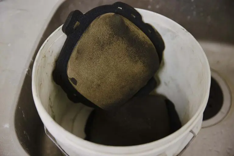 洗剤をかけた後はエアフィルターが浸るくらいに水またはお湯を入れ、もみ洗いをしていきます。この時の動作は米研ぎをしているようなイメージ。押して握って、押して握ってを繰り返していきます。