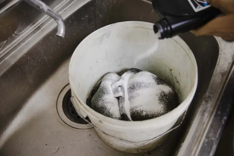 水洗いを終えたらバケツやTWINAIR クリーニングタブなどにエアフィルターを入れて、バイオエアフィルタークリーナーをまんべんなく振りかけていきます。目分量としては1つのエアフィルター全体にかかるくらい。この量で4〜5個一緒に洗っても綺麗に汚れが落ちるくらいの洗浄力なので、エアフィルターを複数持っている人は、1回につき1個洗うのではなく、1回に複数個まとめて洗うのも良いでしょう。