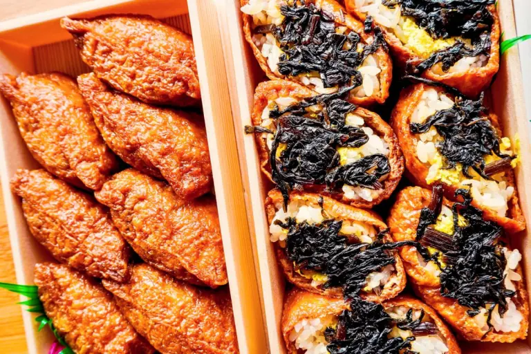 この門前に、いなり寿司の店が並んでいて、シンプルないなり寿司のほかに、さまざまな具をトッピングした各店独自のいなり寿司もあって、味のバラエティを楽しめるだけでなく、ボリュームもあり、これだけで満腹になります。参拝のついでに折り詰めを買って、朝食や昼食にしてはどうでしょうか。
