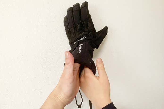 雪山登山では、休憩中などで外したグローブが強風で飛ばされてしまい紛失することは、手指の凍傷に直結する危険な事態。このため雪山用グローブの多くは、グローブと腕を連結させるリストバンドが付属しています。