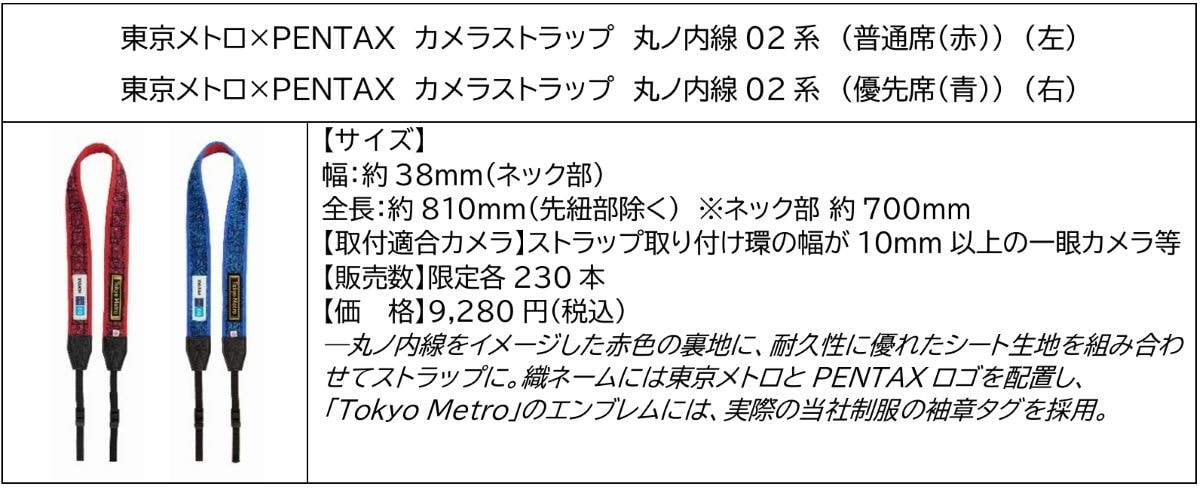 丸ノ内線02系シートが数量限定カメラストラップに!東京メトロ×PENTAXコラボ第2弾、制服の袖章も