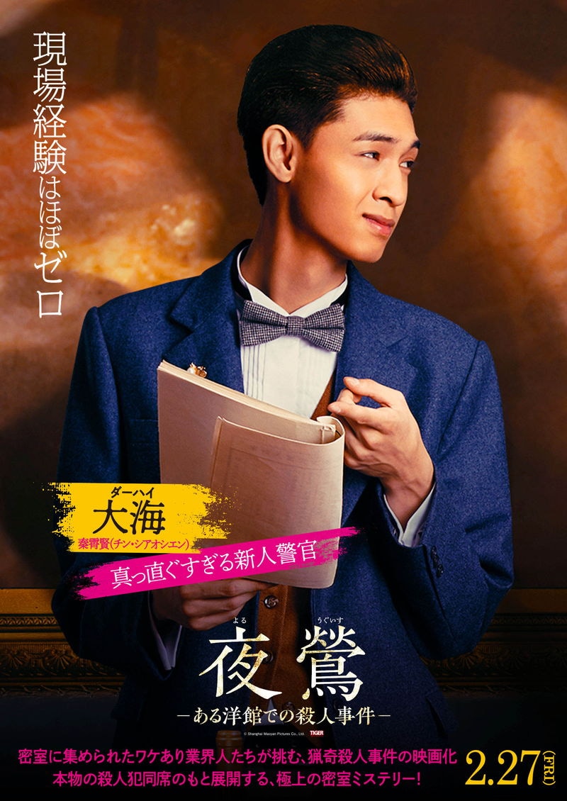 2026年2月27日より劇場公開される、イン・ジョンが主演を務め、2022年の百花賞最優秀脚本賞を受賞したミステリー映画「夜鶯 -ある洋館での殺人事件-」から、キャラクタービジュアルが公開された。脚本を作り上げるため真実を追い求める主人公・李家輝(リー・ジアフイ)と、ワケあり業界人たちに、キャラクターを象徴するセリフが添えられたビジュアルとなっている。