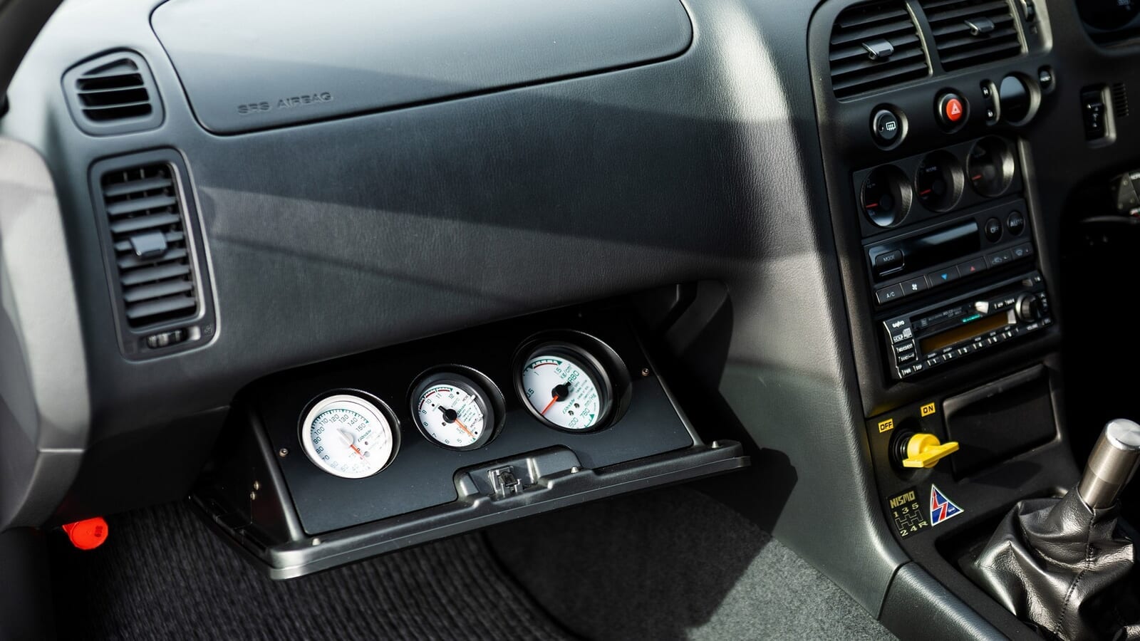 4輪駆動、4輪操舵(4WS)、ビルシュタイン製サスペンション、強化ブレーキ、ワイドボディキット、そしてカーボンケブラー製ボンネットを備え、ベースとなったVスペックを遥かに凌駕する存在となった。0-60マイル(96km/h)加速は約4秒で処理され、最高速度は186マイル(300km/h)に達した。ああ、それからグローブボックス内には追加のアナログメーター(※3)が装備されている。我々の見解では、それだけで100万ドルの価値があると思うね。