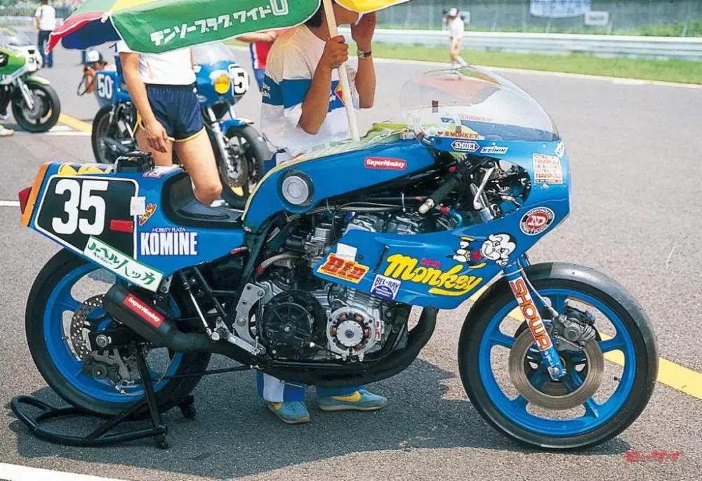 ■鈴鹿8耐を通して急成長を遂げたチームスーパーモンキーのCB900Fは、一時は3位を走り、最終的にはプライベーター最上位の6位で完走を果たした(ライダーは福井正/伊藤巧)。フレームは同社のオリジナル。