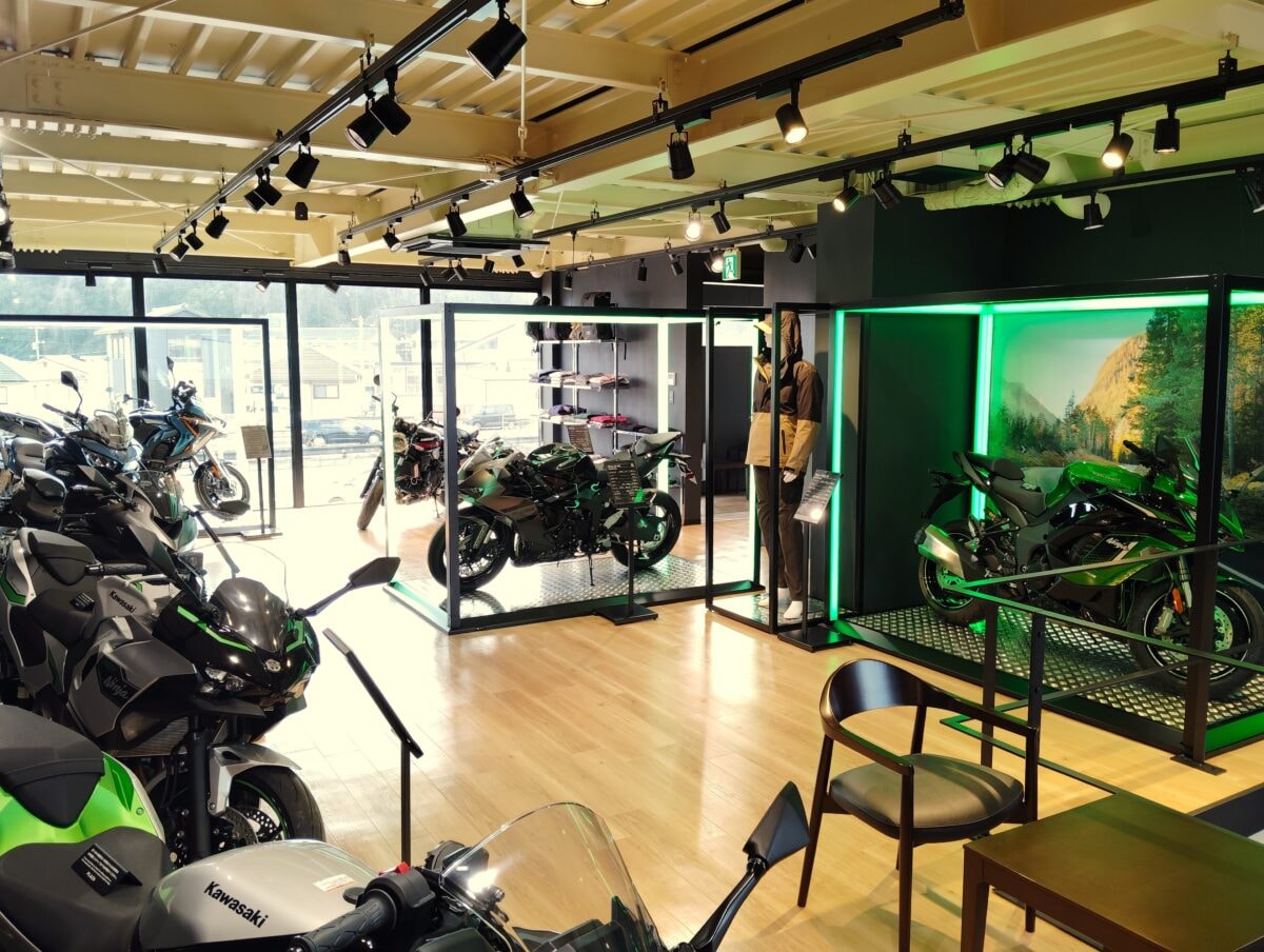 岡山県県倉敷市の「カワサキ プラザ倉敷」がリニューアル!ウッディな明るい店内に生まれ変わりました。経験豊かなスタッフが皆様のモーターサイクルライフをサポートします!