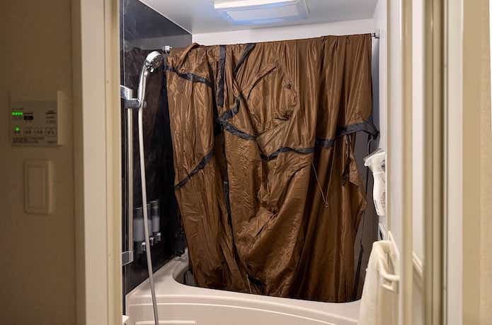 ですが、「ココネスト」なら1人暮らしの浴室でも干せるサイズ感。撤収時に悩むことがなくなり、ノンストレスで片付けができるようになりました。