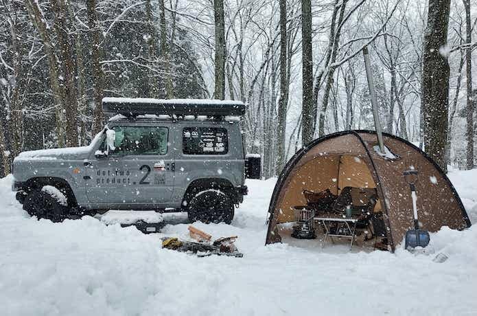 車中泊キャンプ、冬はタープ下じゃ寒すぎる問題…。
