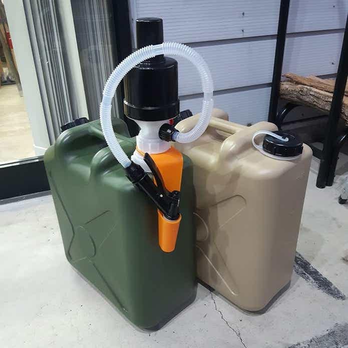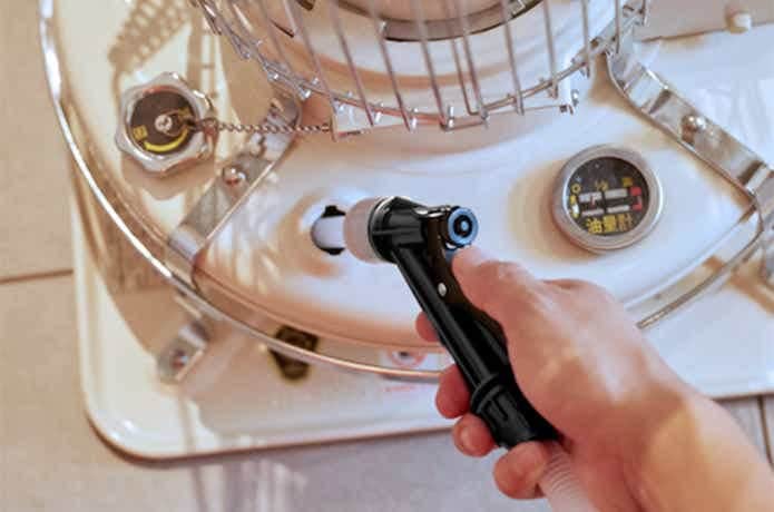 そうなると不可避なのが、面倒な給油。手動のよくあるタイプの給油ポンプは、ノズルの抜き差しの度に灯油が垂れて本当に面倒です。