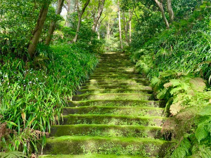 境内は四季折々の花々を楽しむことができるほか、美しい苔の階段があることから「苔寺」とも呼ばれています。