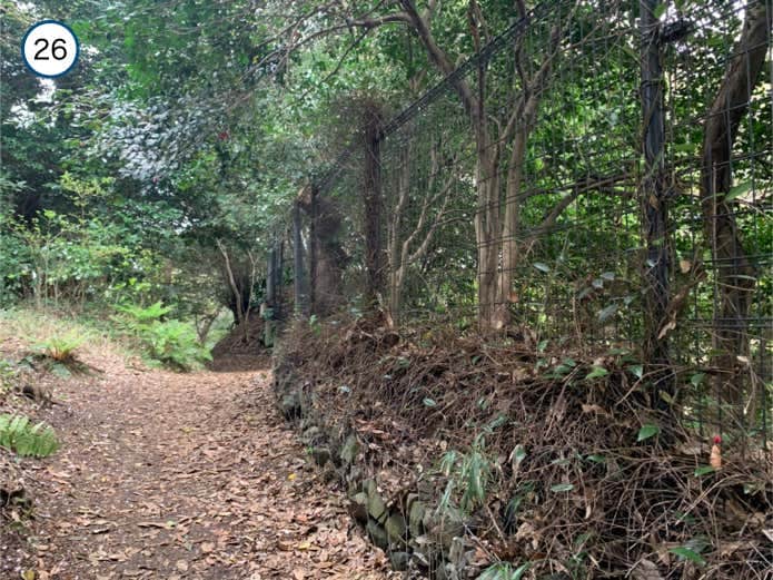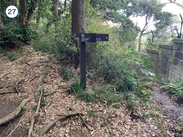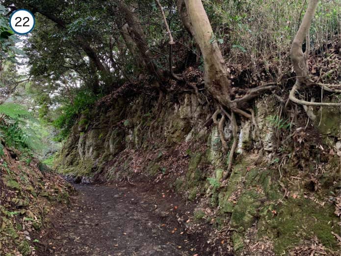 周囲が再び森になっても続く大切岸。このまま進むと衣張山ハイキングコースと合流しますが、今回は[27]の分岐へ引き返します。