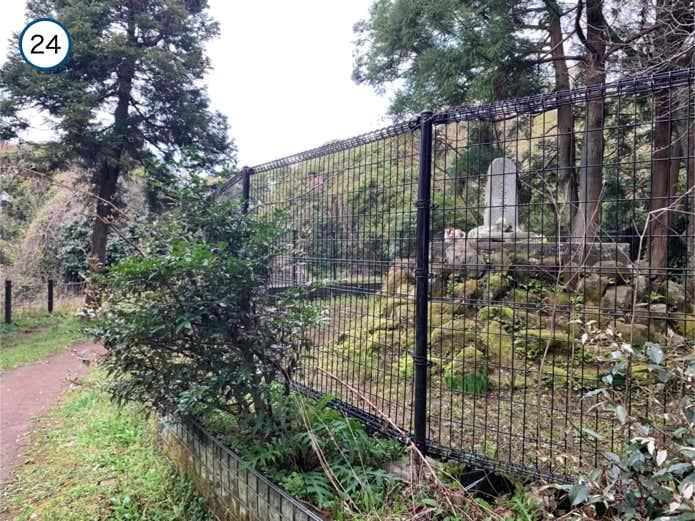 しばらく進むと森が開け、フェンスに囲まれた無縁諸霊之碑の左側を歩いていきます。