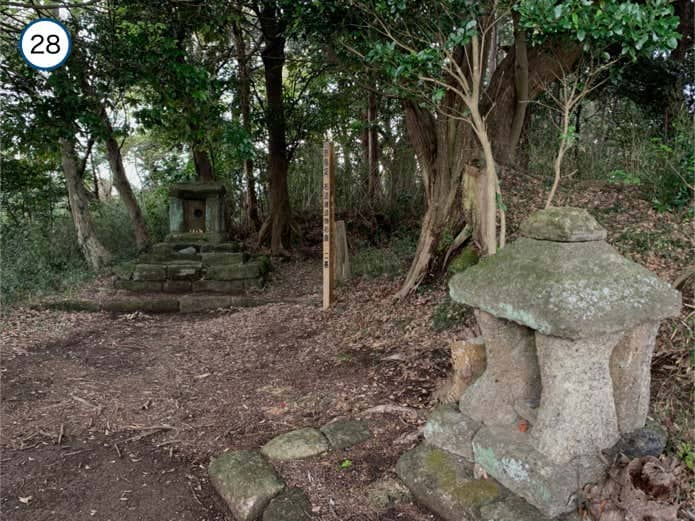 森の中にたたずむ二基の石廟(せきびょう)は、鎌倉時代末期から南北朝時代の造営とされるお墓で、鎌倉市の文化財に指定されています。