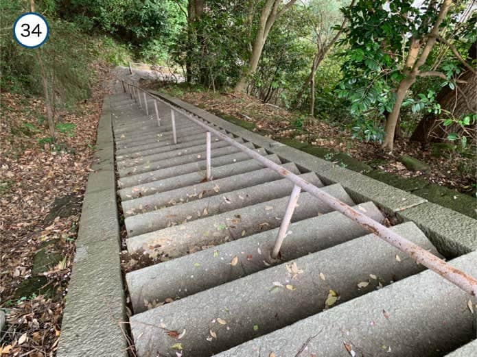 やがてハイキングコースは階段に変わり、名越切通し分岐へと登っていきます。