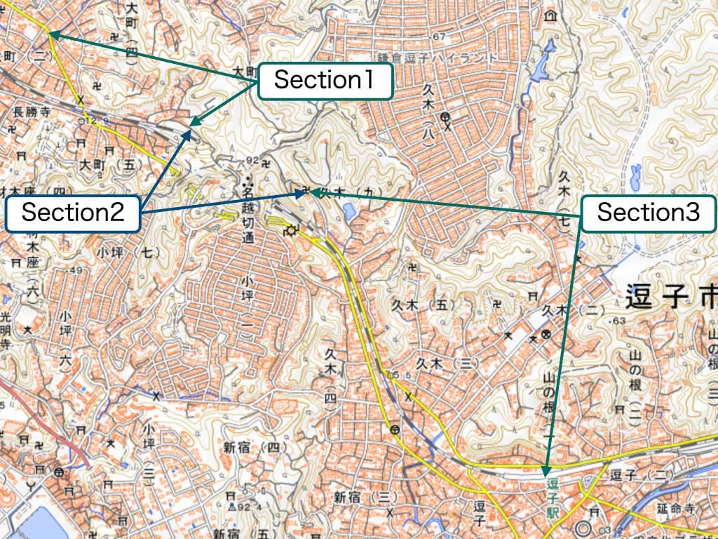 (1.6km・約47分) ▶Section3:法性寺〜逗子駅