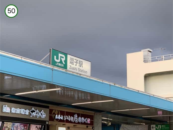 ゴールの逗子駅東口に到着です。コンビニエンスストアや喫茶店のほか、駅弁が人気の大船軒の支店もあるので、帰路の電車のお楽しみを購入してもよいでしょう。