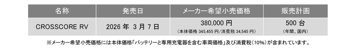 ヤマハ発動機株式会社は、スポーツ電動アシスト自転車「YPJシリーズ」の新モデル「CROSSCORE RV(クロスコア アールブイ)」を2026年3月7日に発売すると発表した。
