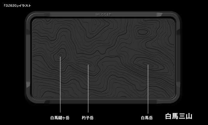 モチーフになっているのは、北アルプスの名峰・白馬三山。地理院タイルをもとに等高線を再構成し、山の立体感や流れるラインをプロダクトに落とし込んでいます。