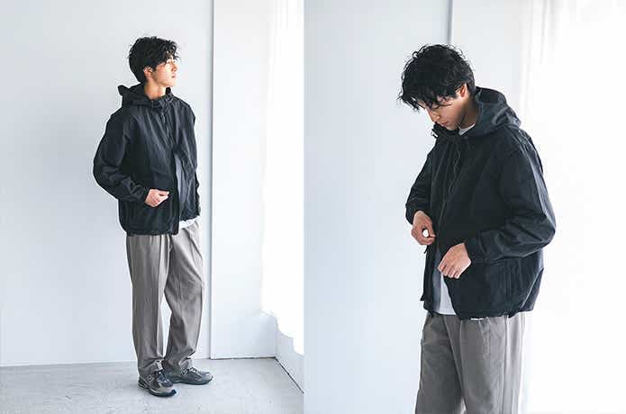次にご紹介するのが、同じ素材を使ったNYLON WASHER PARKA。ダブルジップ仕様で着脱がしやすく、カジュアルにもキレイめにも合わせられる万能デザインです。こちらも3色展開で、肩の力を抜いた大人のアウトドアミックススタイルを楽しめそう。