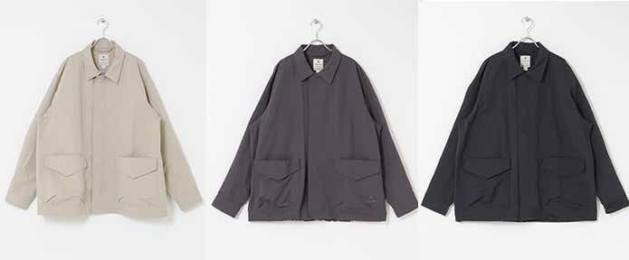 まず注目したいのが、軽やかなナイロン素材に“洗い加工”を施したNYLON WASHER JACKET。素材は自然な凹凸感があり、アウトドアでもタウンユースでも馴染む使い勝手の良さが魅力です。カラー展開はGREIGE、CHARCOAL、BLACKの3色、シンプルながらもコーデの幅を広げてくれます。