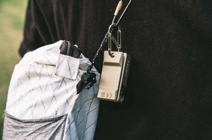 充電用USB端子にホールが空いており、キーリングやファスナーの引き手、バックパックのデイジーチェーンに付けても、重さの存在感はほぼゼロ。