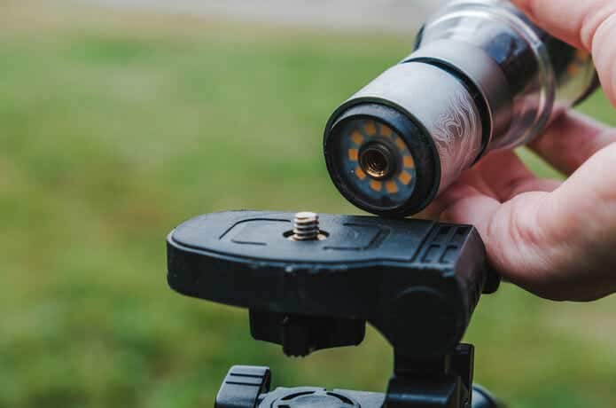 底面には1/4インチのネジ穴を標準装備。カメラ用三脚に取り付けたり、サードパーティ製パーツでカスタムしたりと、拡張性も十分。