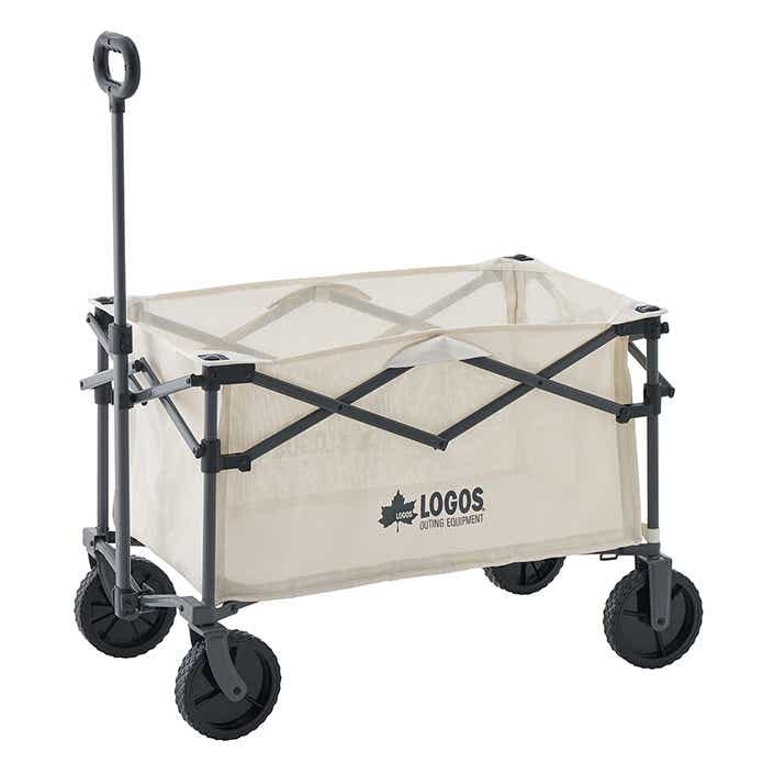 サイト設営や撤収時に活躍するのが「スマートテスリンキャリーカート」。約109Lの大容量で、耐荷重は約120kg。ギアや食材をまとめて運べる頼もしさがあります。