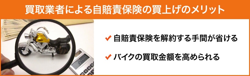 買取業者による自賠責保険の買上げは、自賠責保険を解約する手間が省けて、かつバイクの買取金額を高められる点がメリットです。