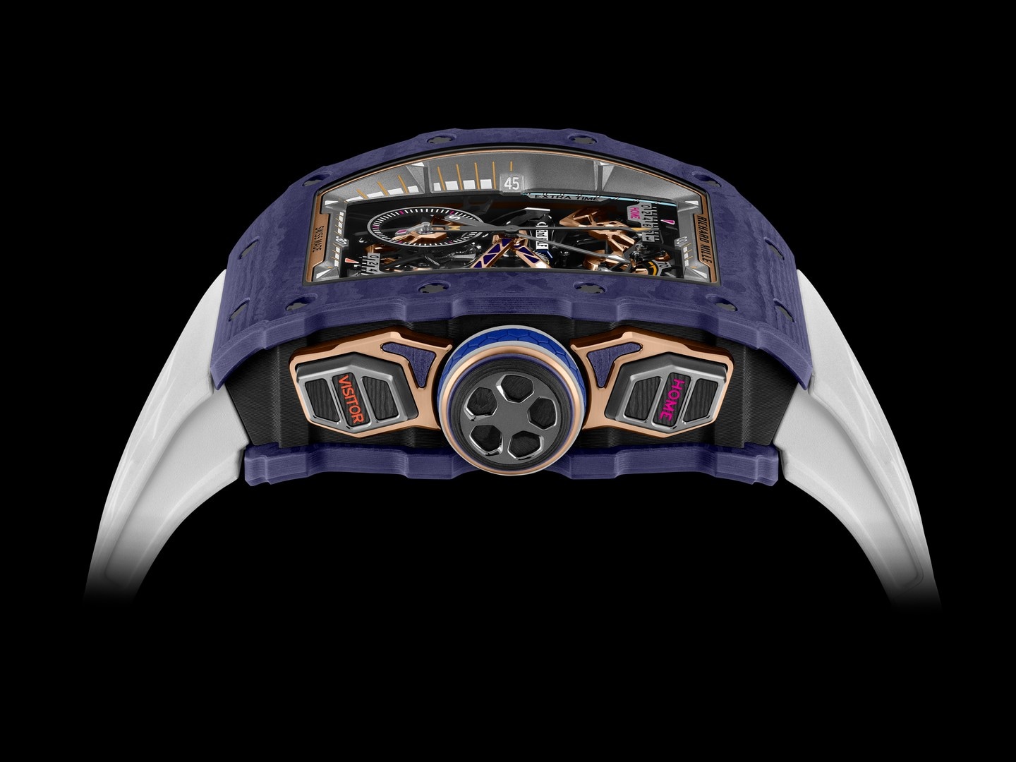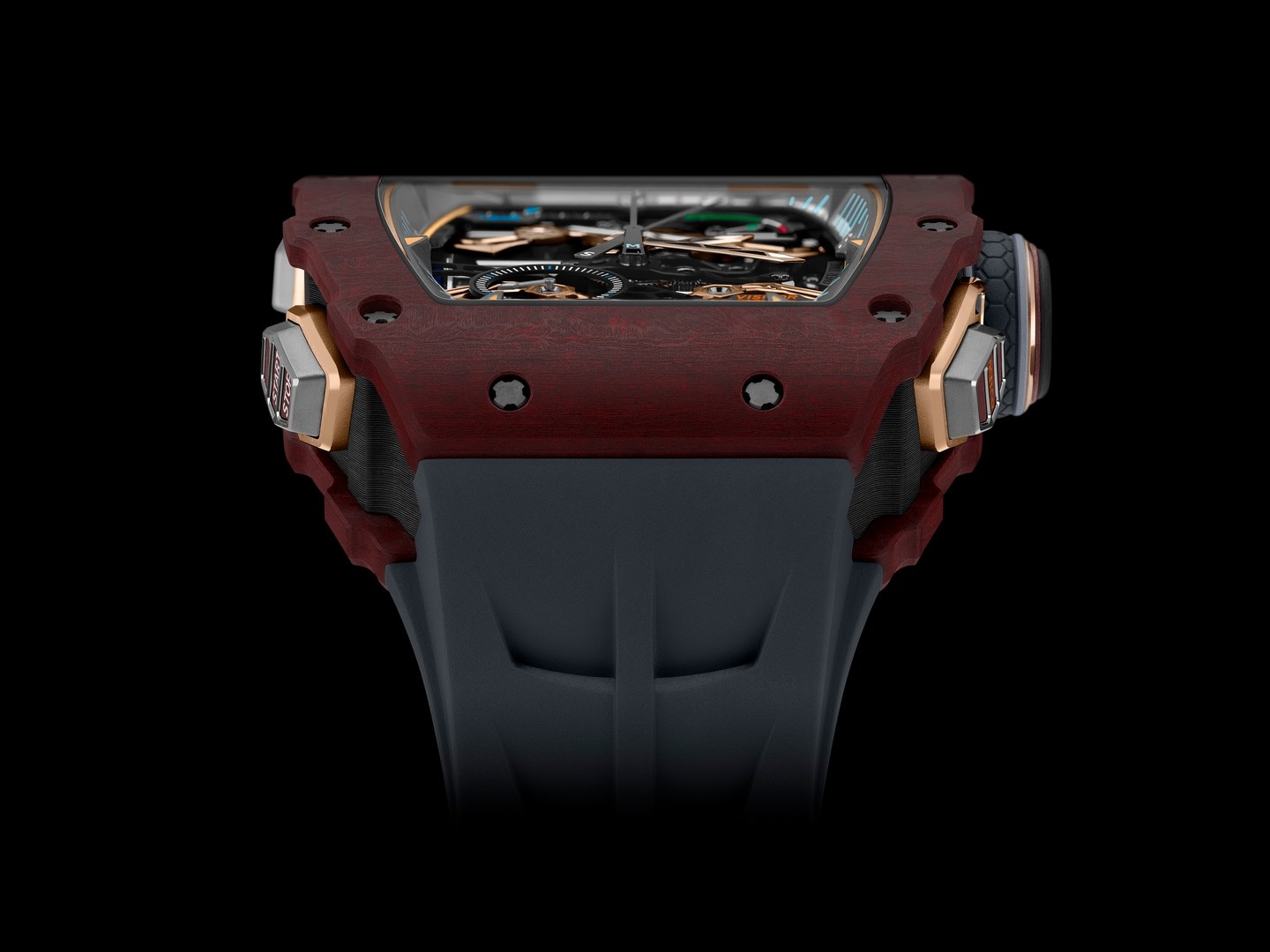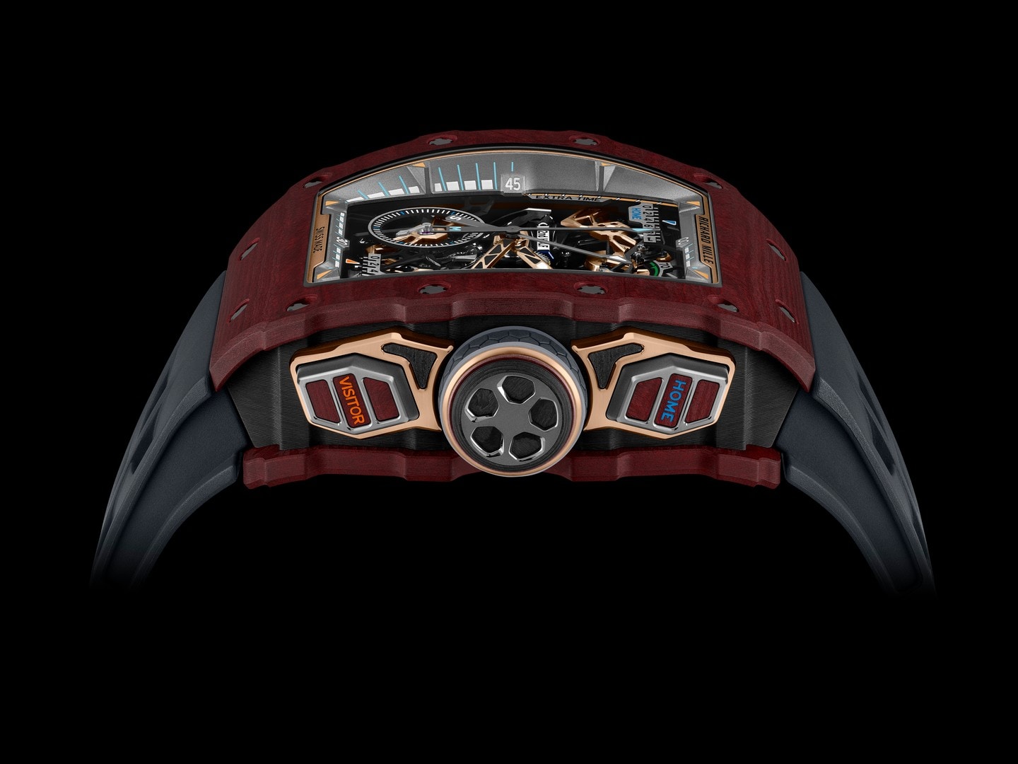 この驚異的なタイムピースは、レッドカーマインバサルトTPT®とダークブルークオーツTPT®の2バージョンが、それぞれ世界30本限定で生産される。