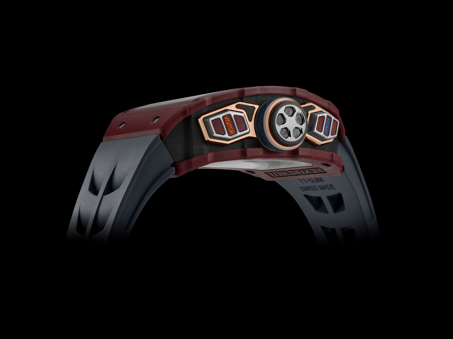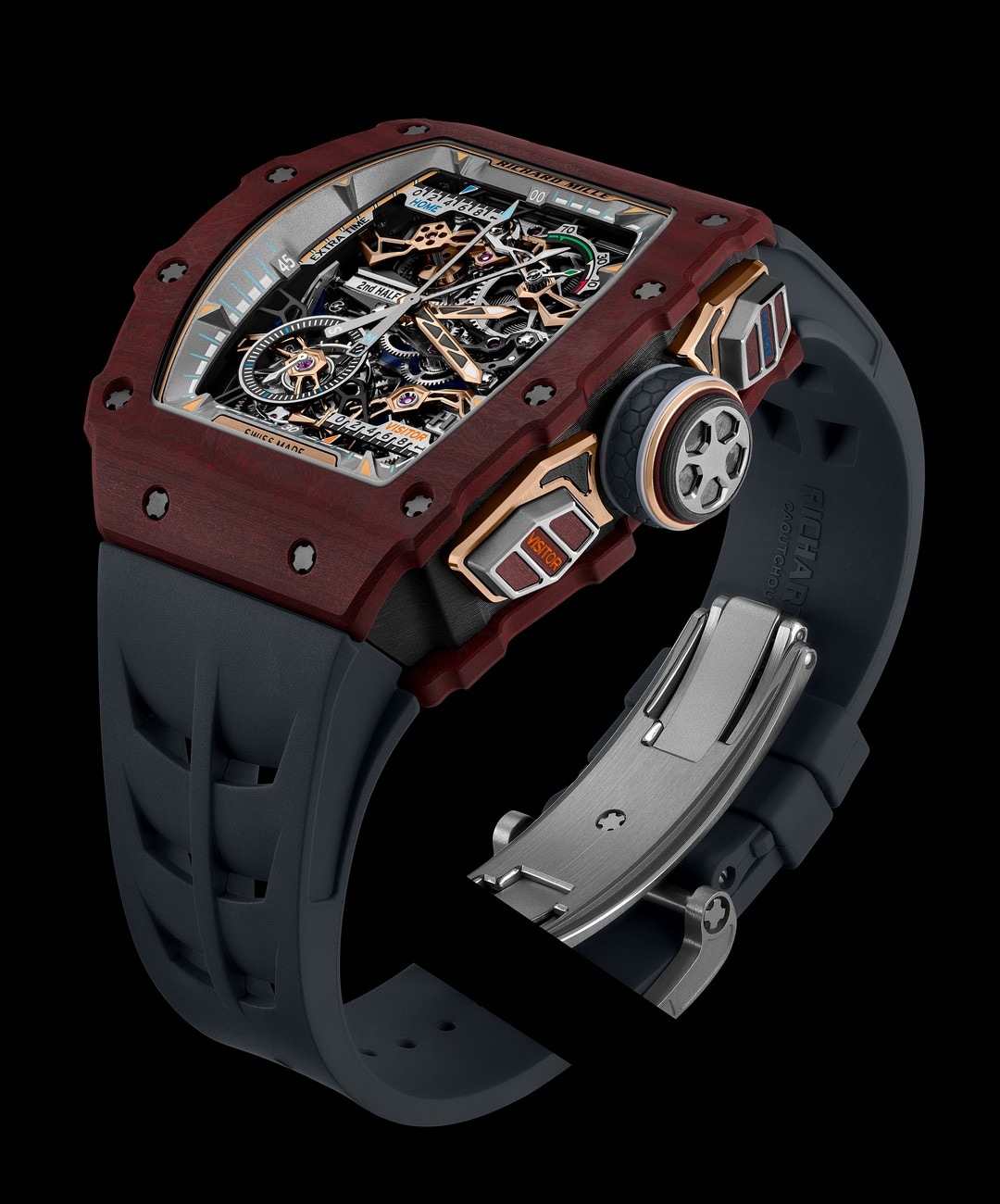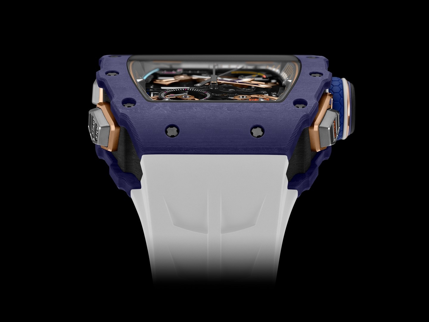 この驚異的なタイムピースは、レッドカーマインバサルトTPT®とダークブルークオーツTPT®の2バージョンが、それぞれ世界30本限定で生産される。