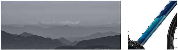 フレームには、ライド中に遠くに見える山の稜線をモチーフにした「RIDGE PATTERN」をダウンチューブに大きくあしらっています。