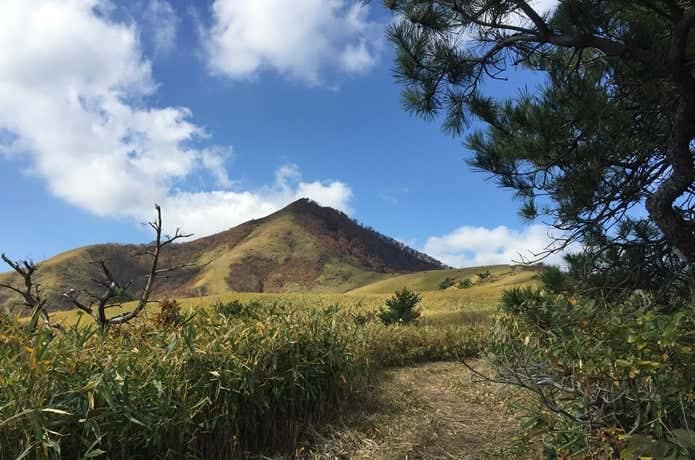 国道180号線明地トンネルの付近にある駐車場が出発地点です。きれいに整備され歩きやすい登山道には要所に休憩所やベンチが設置されています。頂上までは60分程度の道のりです。なだらかな草地の山頂部から眺望を楽しんだ後は、同じ道で辿って下山します。
