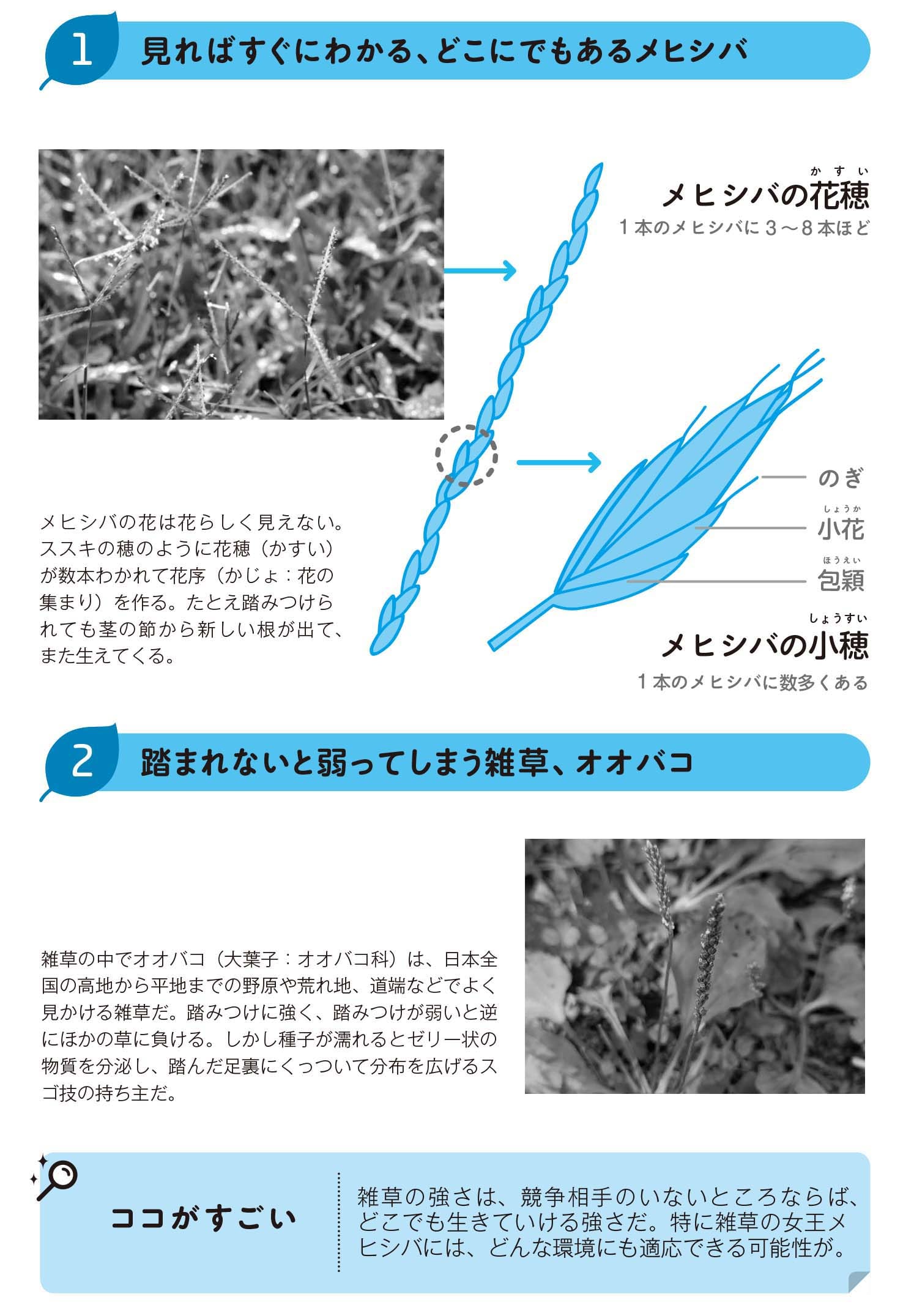 メヒシバは、1個体で万単位の花「小穂(しょうすい)」をつけ、突然変異の可能性が高いのです。これはどんな環境にも適応できる能力を獲得する可能性があるということを意味します。