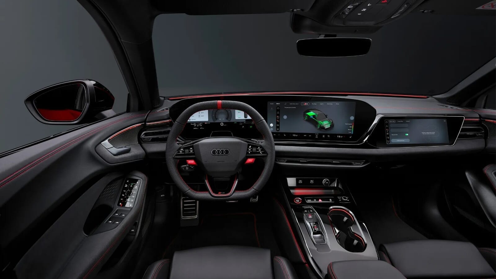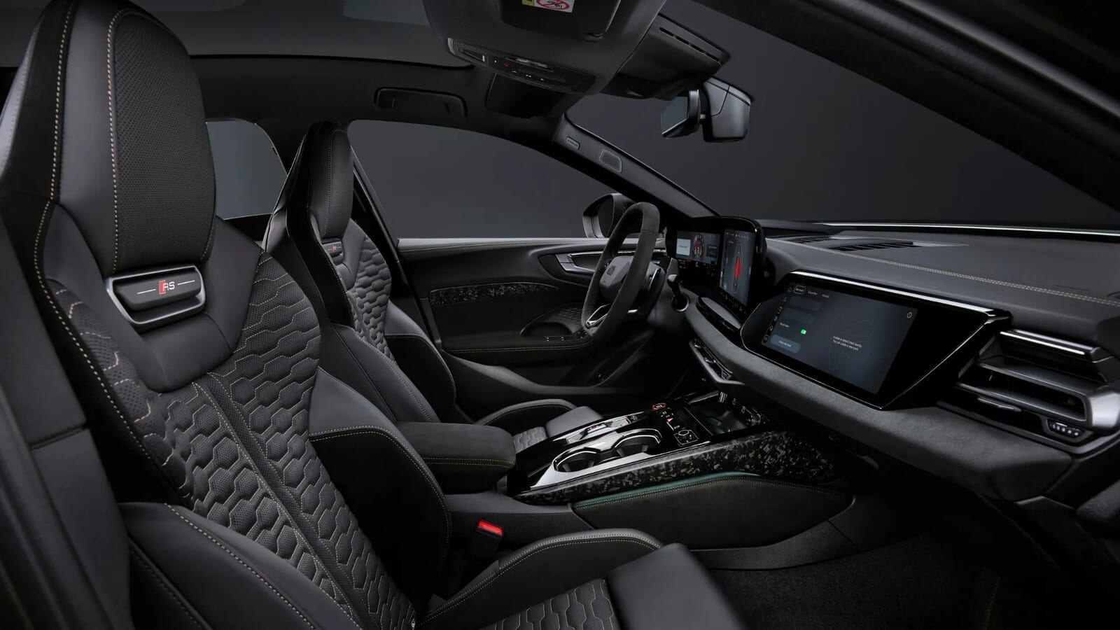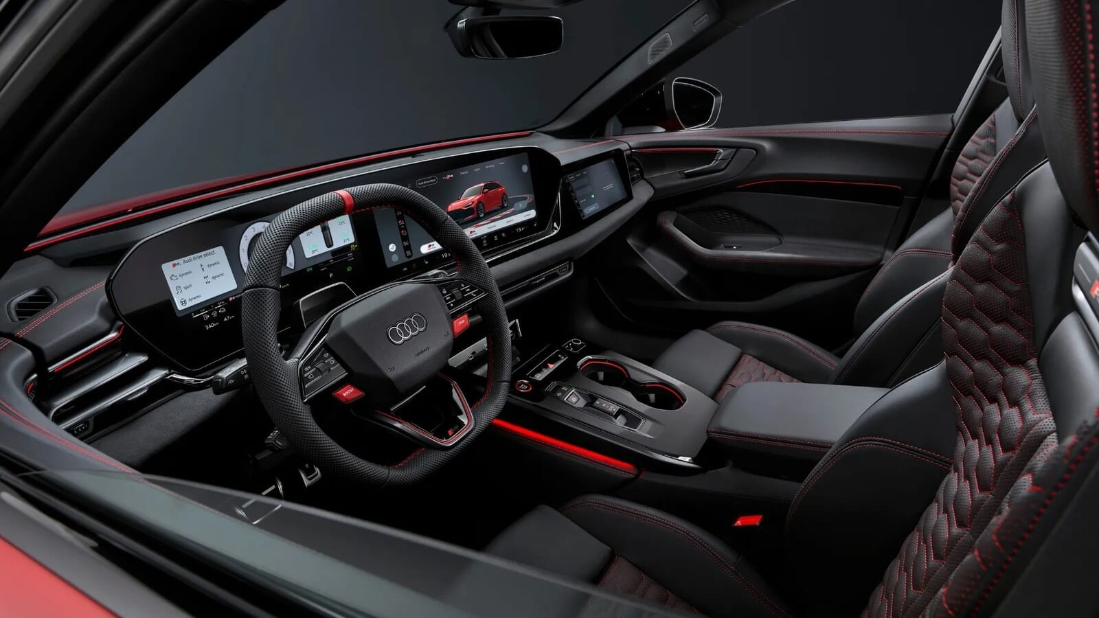インテリアに驚きはない。リフレッシュされたA5と同じだが、よりRSっぽくなっている。つまり、多くのOLEDスクリーン、特別に構成されたバーチャルコクピット、HUD(ヘッドアップディスプレイ)のオプション、スポーツシート、派手な素材の選択、そして運転入力とラップタイムを分析できる「ドライビングエクスペリエンス」と呼ばれるものがある。これを使うのは自己責任で頼む。