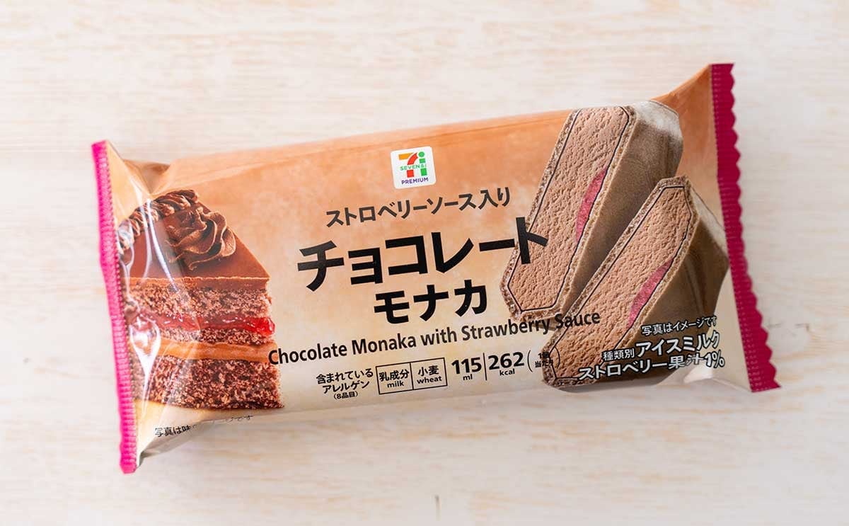 セブン-イレブンは2026年2月17日(火)に、「セブンプレミアム ストロベリーソース入りチョコレートモナカ」(税込246.24円)を発売しました。
