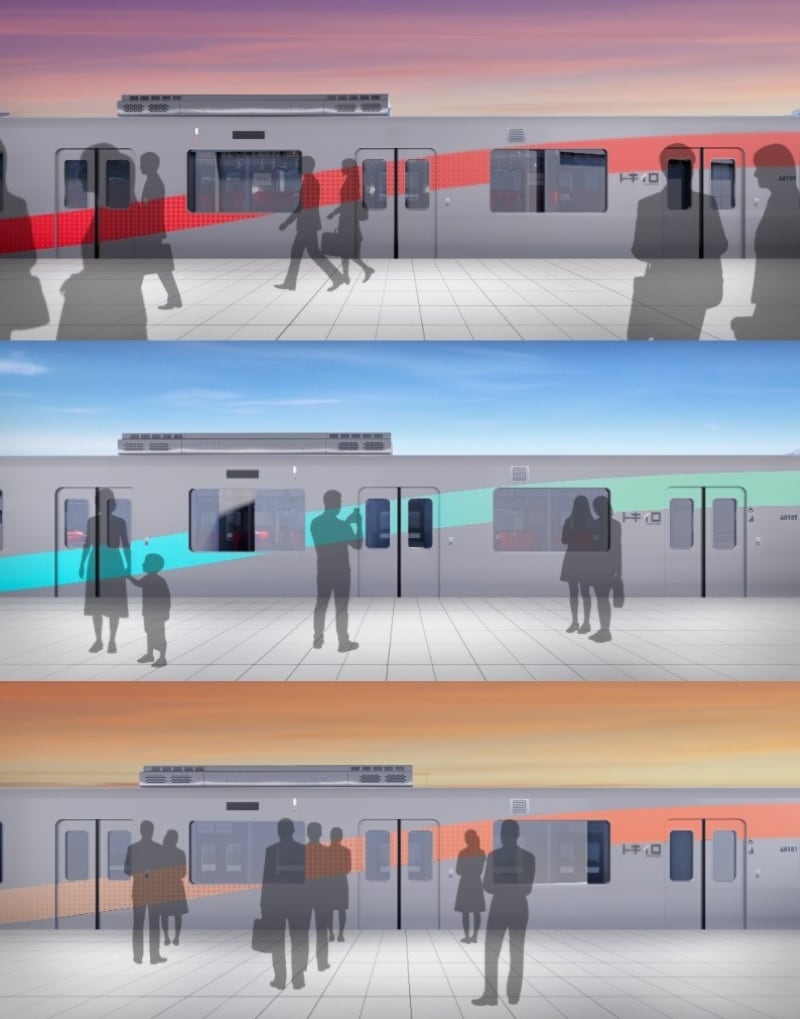 愛称の「トキイロ」は、その名の通り「時の色(Time’s Color)」をイメージして名付けられました。最大の特徴は、これまでの西武鉄道の車両にはなかった大胆なカラーリングです。「街並みや人々の隙間をつなげる」というテーマのもと、なみ型のライン「エナジーウェーブ」を採用。朝・昼・夕方の空の色をモチーフにしたグラデーションが施され、1編成8両のすべての車両でカラーリングが異なるという、同社初の試みが取り入れられています。