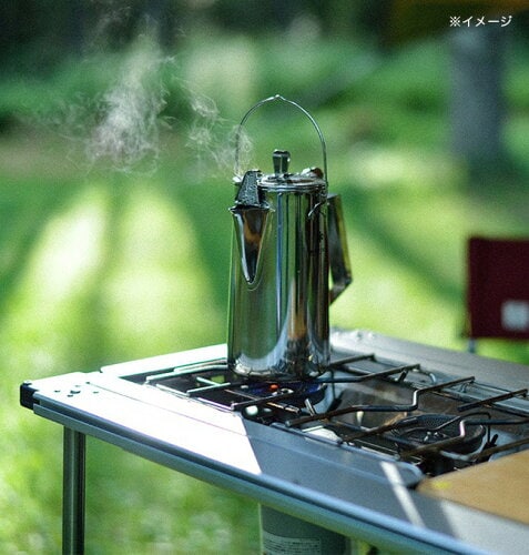 キャンプの朝や急いでお湯を沸かしたいときは、底面が広くお湯を沸かすのに時間がかからないやかん型が便利。馴染みのある形状も、焚き火の雰囲気を盛り上げてくれます。