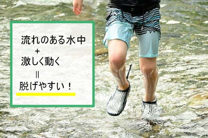 海や川など水に入った時は、波や水の抵抗でマリンシューズは脱げやすい状況になります。