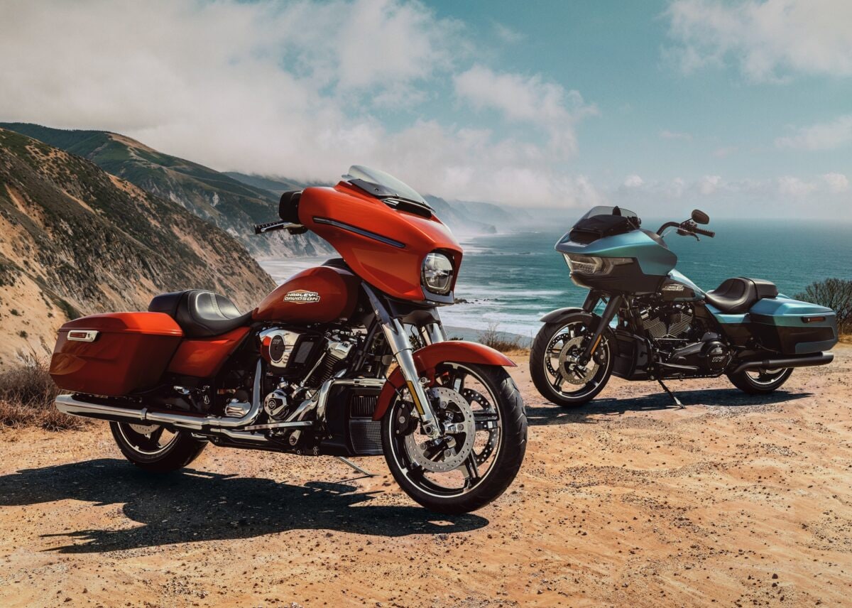 一方で、独自のMilwaukee-Eight® 121 H.O.エンジンと高性能コンポーネントの数々を組み合わせた「CVO ストリートグライドST」(写真上左) と「CVOロードグライド ST」(写真上右)は、King of the Baggers選手権に参戦するファクトリーモーターサイクルからインスピレーションを得た美しいペイントとグラフィックが魅力的です。プレミアムボディカラーは、“インフェルノグレー”または“エレクトリックコースト”から選択できます。「CVO ロードグライド ST」は2025年モデルよりも軽量化し、シトラスヒートという追加カラーも加わりました。両モデルともブラック仕上げの足回りで、パワートレインのトリムにはパフォーマンスレッド、燃料タンクにはHarley-Davidson のウォータースライドグラフィック、シートサドルバッグサイドにはCVO STのロゴがあしらわれています。