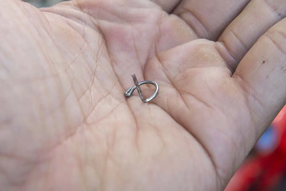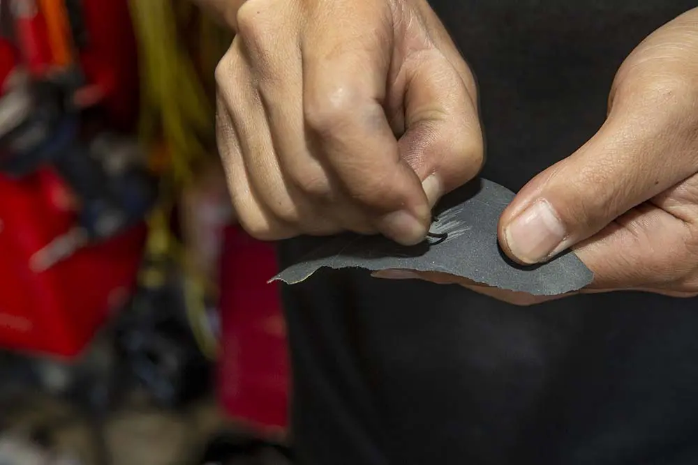 新品のサークリップにはバリがついていることがあるので、紙ヤスリなどで先端を丸くしてあげます。