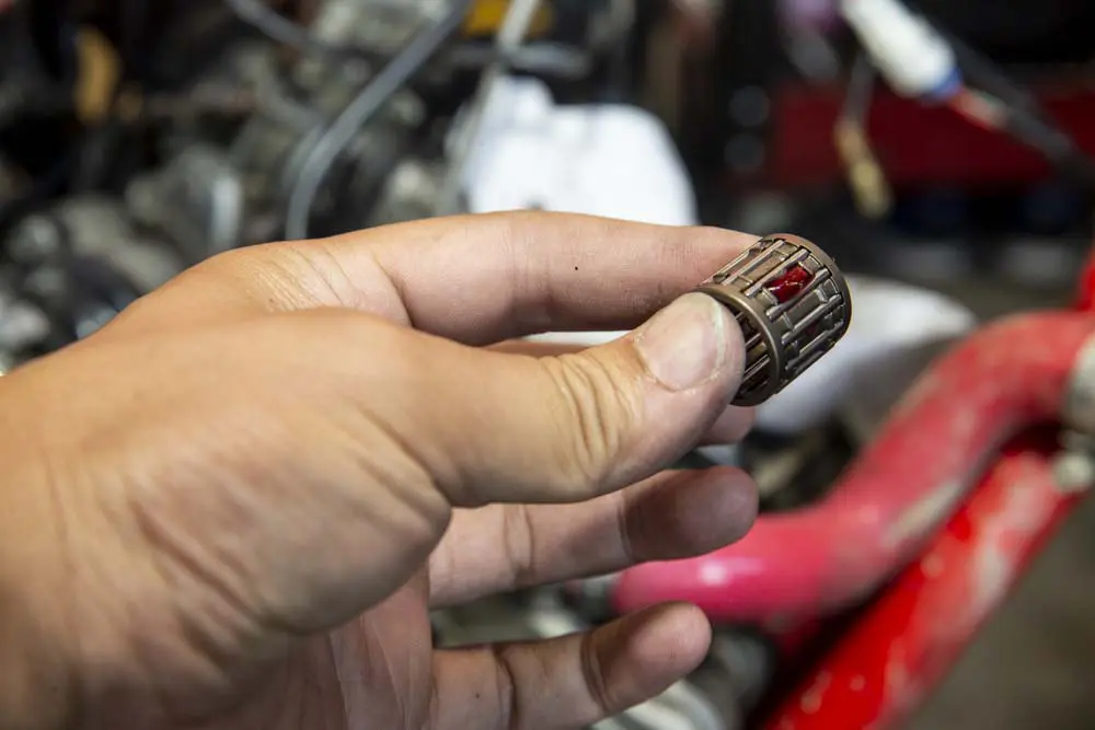 また、ピストンを外したらクランクもチェックしておきましょう。シックネスゲージでコンロッドとクランクウェブの隙間を計測し、Betaの場合は0.39mm〜0.72mmの間であれば適正値です。手で横や縦に揺らしてみて、もしブレがあるようなら、これはクランクベアリングの交換時期です。