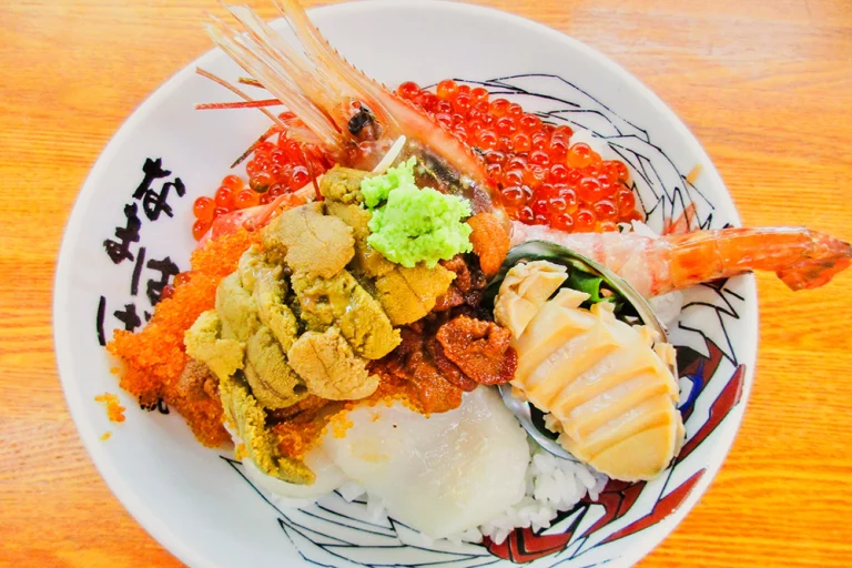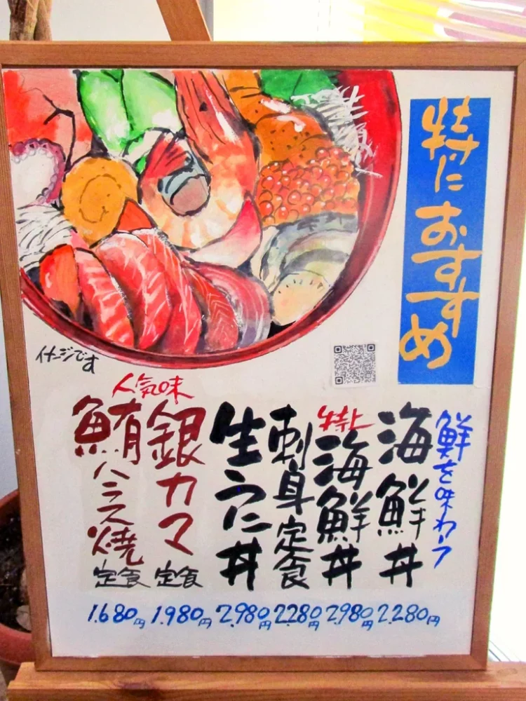 ここでは「海鮮丼」を食べたが、石巻漁港ならではの豪華版。マグロ、ブリ、イカ、タコ、エビ、カニ、ホタテ、ホッキ貝と盛りだくさん。「特上海鮮丼」もある。