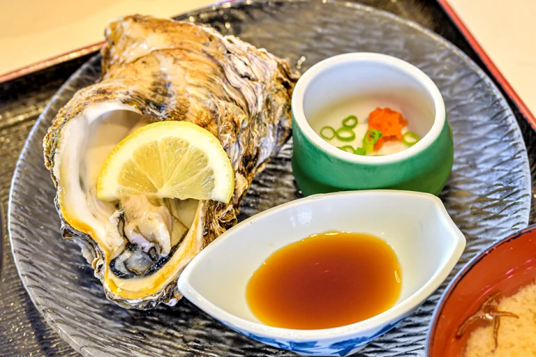 最上川河口にある「さかた海鮮市場」の2階に、早朝からやっている「海鮮どんや とびしま」(7時~9時、11時~18時)がある。人気の海鮮食事処だ。ここではまず「岩ガキ」を食べた。鳥海山の山裾が落ちる日本海沿岸は岩ガキの産地。プリンプリンの食感がたまらない。絶品だ。つづいて海鮮丼の「庄内浜丼」を食べた。味覚もだが、見た目の綺麗さが印象的。これが人気の秘密だろうか。