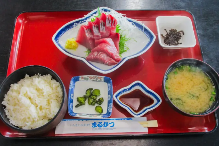 小名浜といえばカツオだ。小名浜のカツオは美味で知られる。ということで「かつお刺身定食」を食べた。鮮度満点。カツオは傷みやすい魚だが、それを刺身で食べられるのがいい。ここではショウガ醤油につけて食べる。