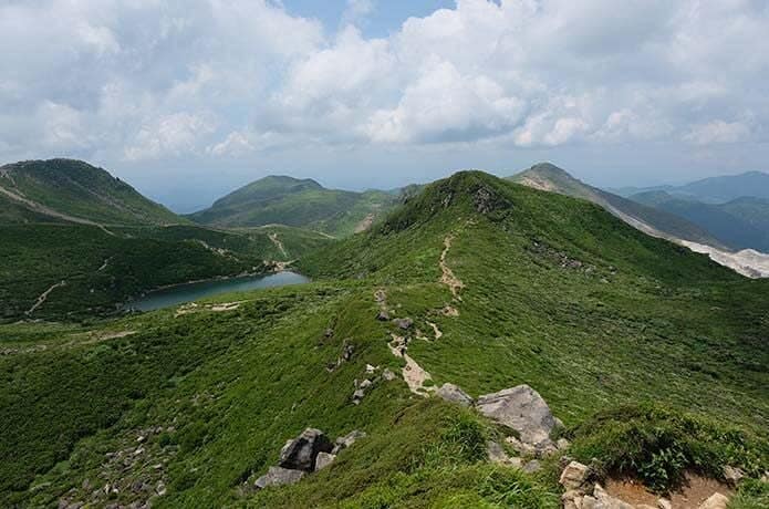 余裕があったら稲星山~中岳を縦走してみましょう。御池というエメラルドグリーン越しに見る九重山は絶景ですよ。