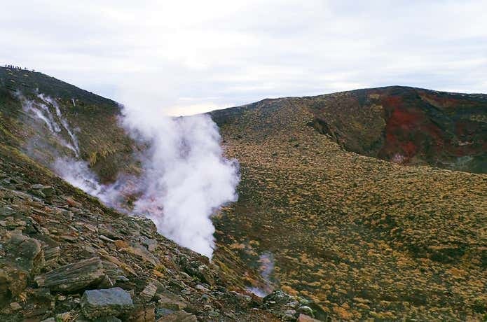 山頂にある火孔と呼ばれる火口は、直径約300m、深さ約200mもある巨大な穴で、過去には底にマグマが見えることもあったそう。現在でもマグマに熱せられた水が湯気となって立ち上っている迫力のある姿を見ることができます。